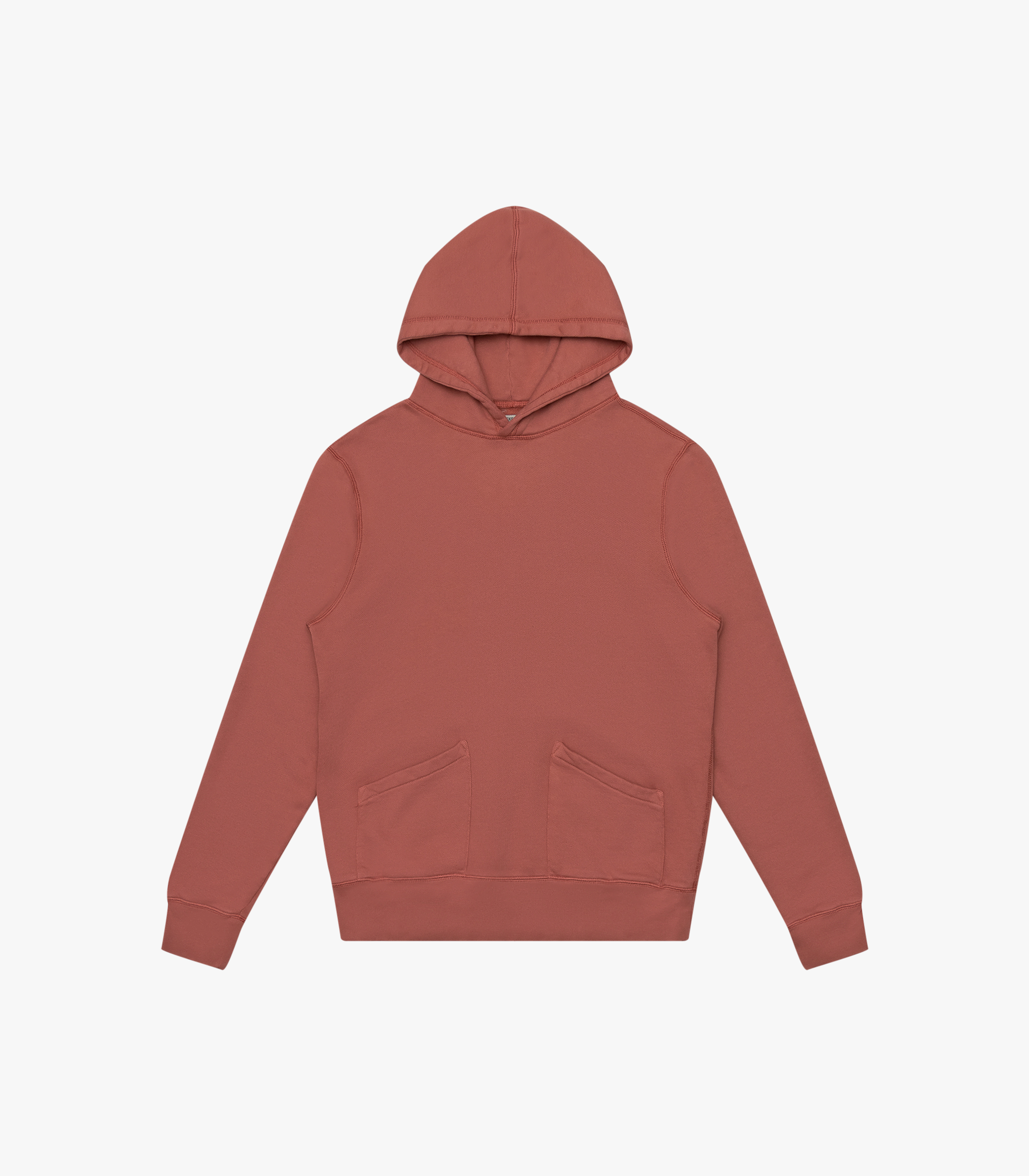 The 50’s Hoodie in Brick. Made of 100% cotton fleece. Pre-shrunk.