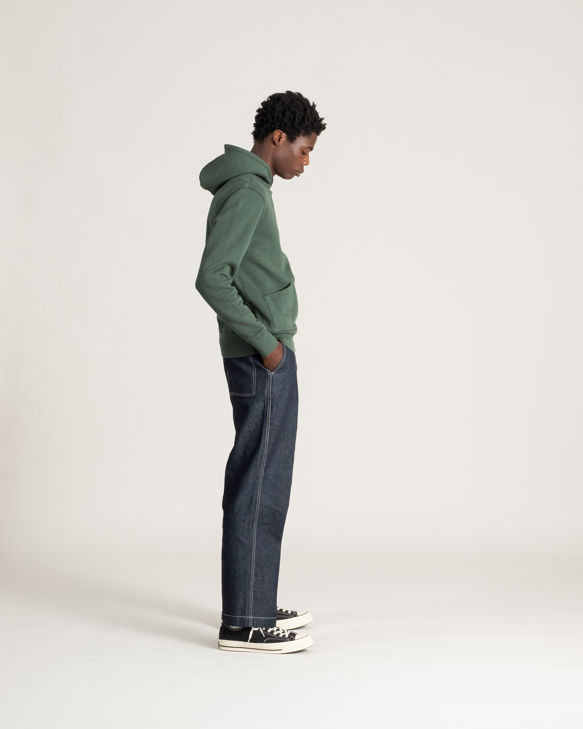 The 50’s Hoodie in Knickerbocker green. Made of 100% cotton fleece. Pre-shrunk.