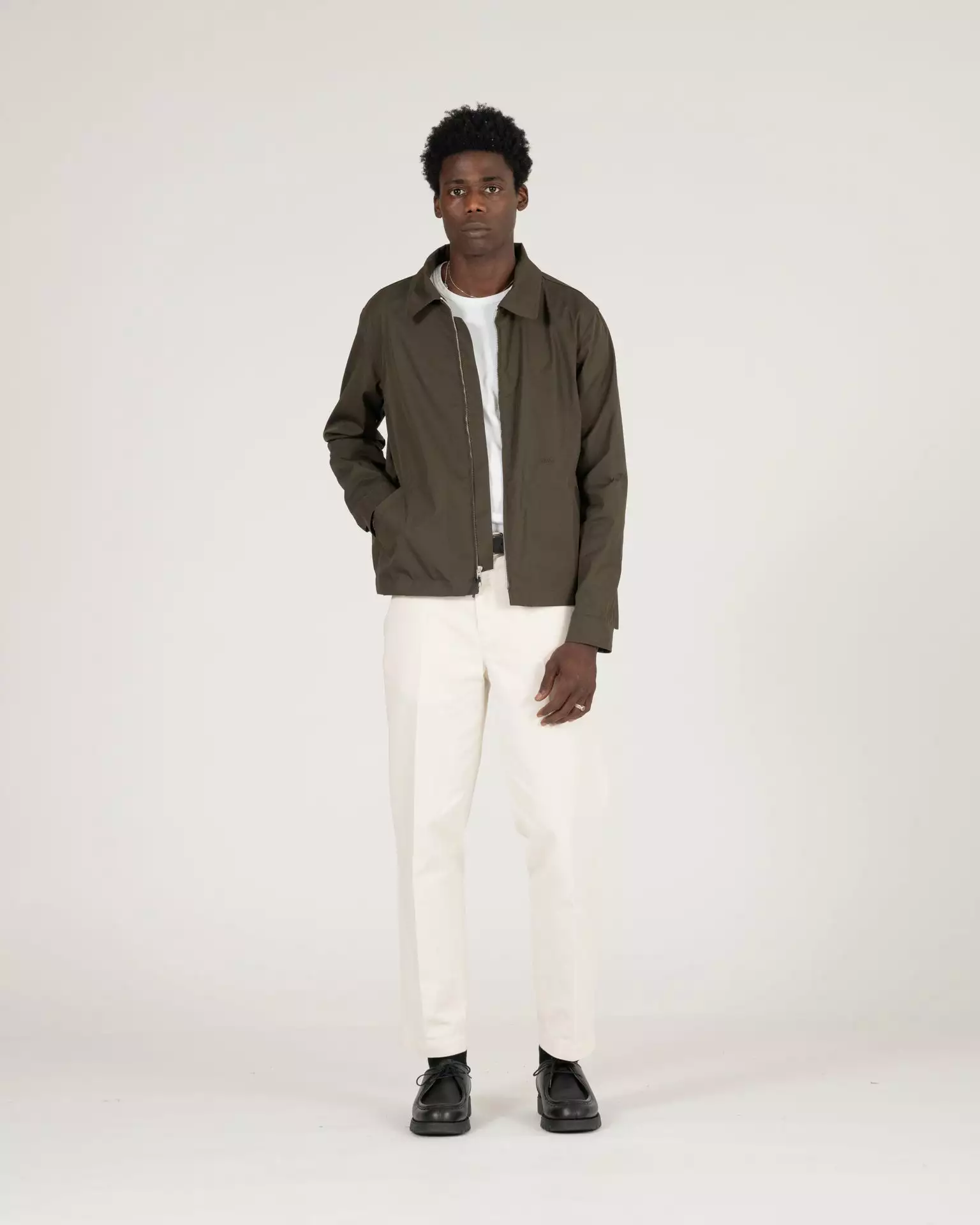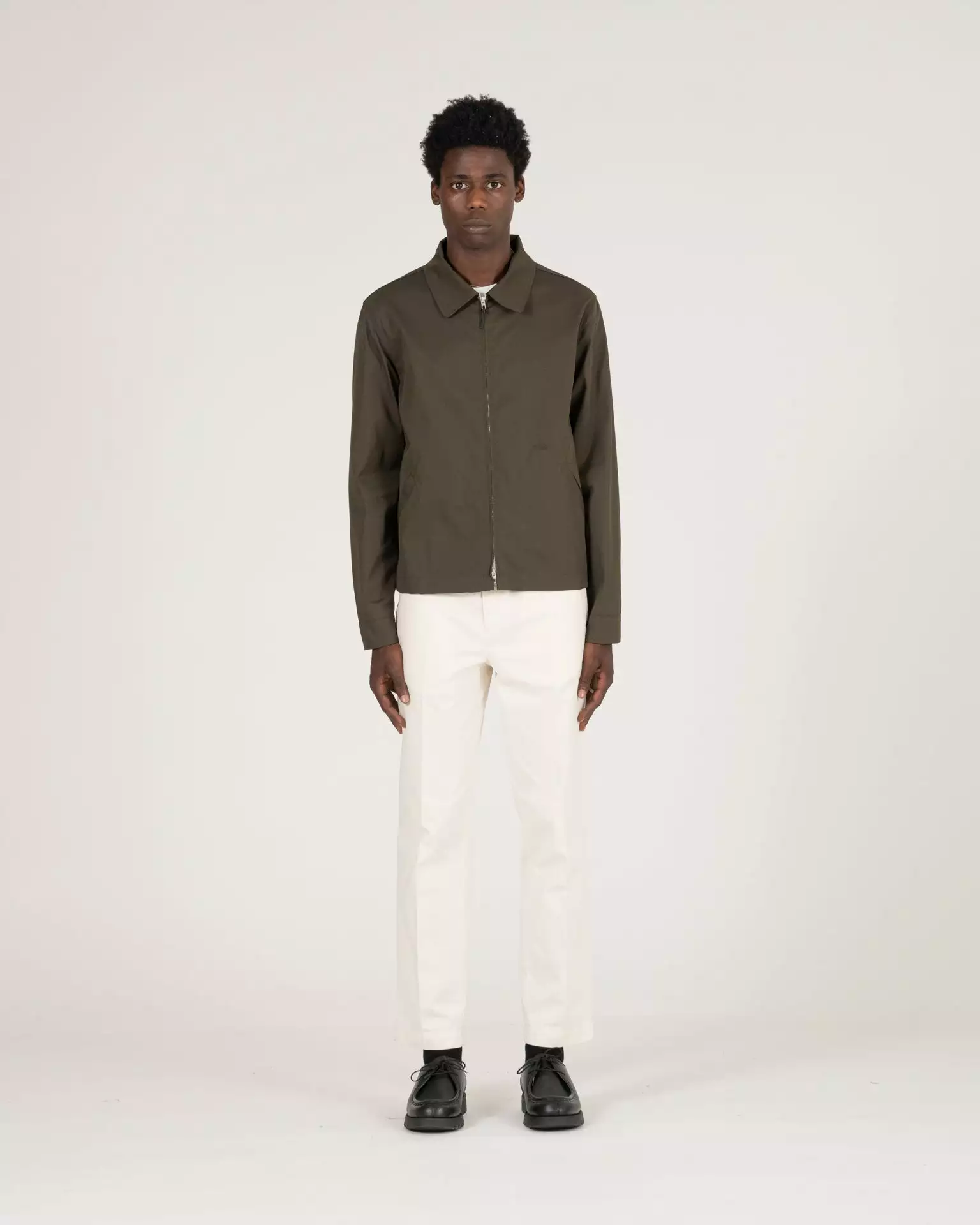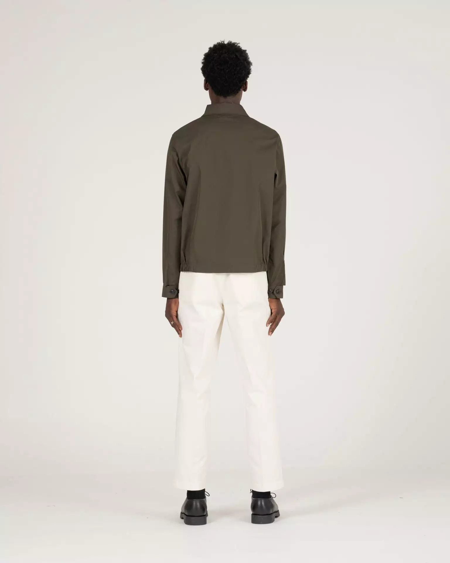The Bonneville Zip Jacket in olive. Made of a PFC free, water repellant cotton and polyamide twill sourced from the well known technical Italian mill, Olmetex. The cloth has technical characteristics with a natural fiber hand feel. Features a two-way Talon Zipper, elastic waistband at sides, inside pocket and K.N.Y. monogram embroidery.