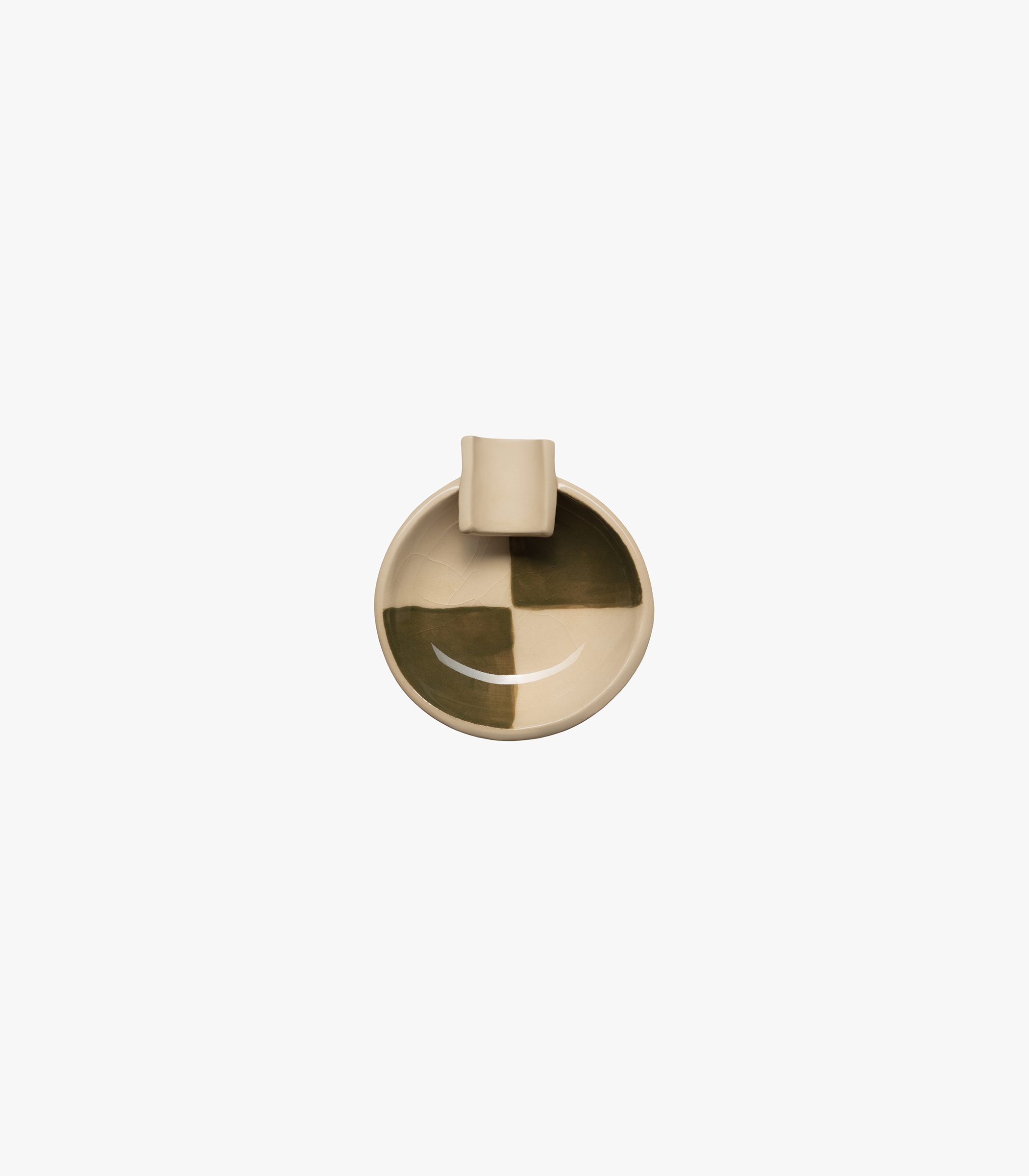 The Check Ash Tray in olive. Handmade ceramics in New York by Streicher Goods.