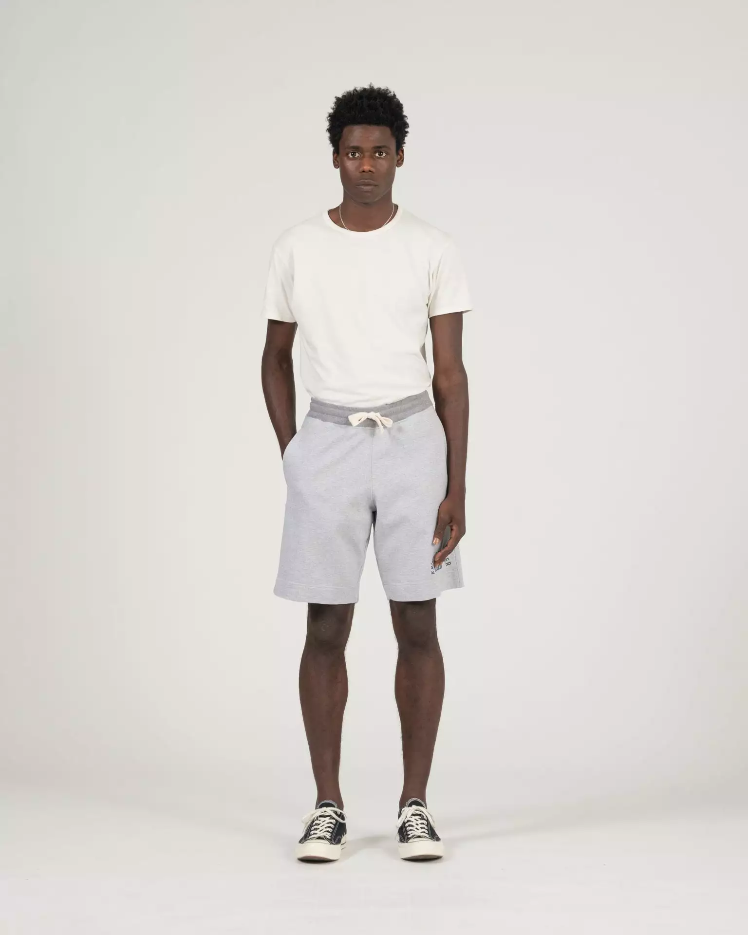 The Collegiate Short in a heather grey combo. Made of 100% cotton fleece. Features a double wide elastic waistband for added comfort and water based print at hem. Pre-shrunk.