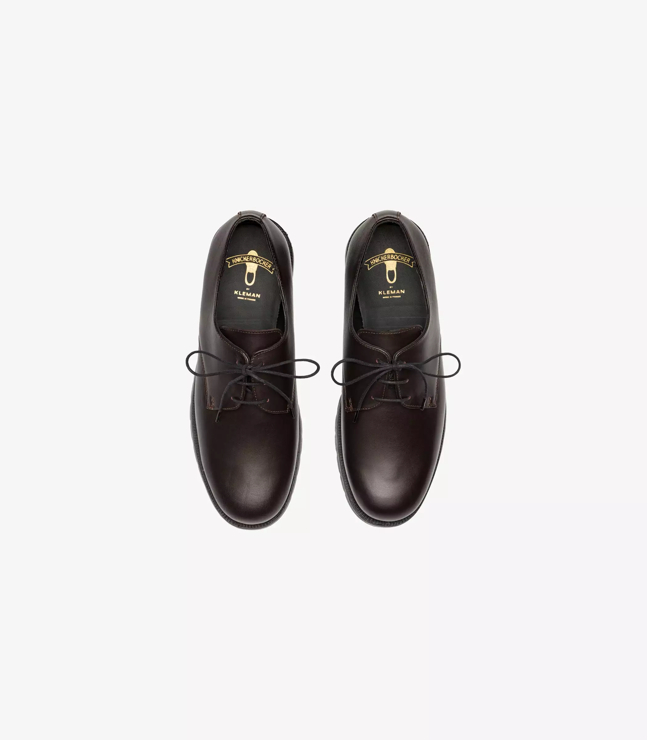 Kleman & Knickerbocker Dormance Derby in Bordeaux. Produced in partnership with Kleman – a traditional shoe manufacturer founded in 1946 with their own factory in Anjou, France. Made for all day comfort and durability, Kleman originally produced workwear styles for the military, postal service and firefighters. Features a leather insole, leather upper & natural rubber outsole. We recommend Huberd’s Shoe Grease for weather-proofing your shoes. Fit is true to size.