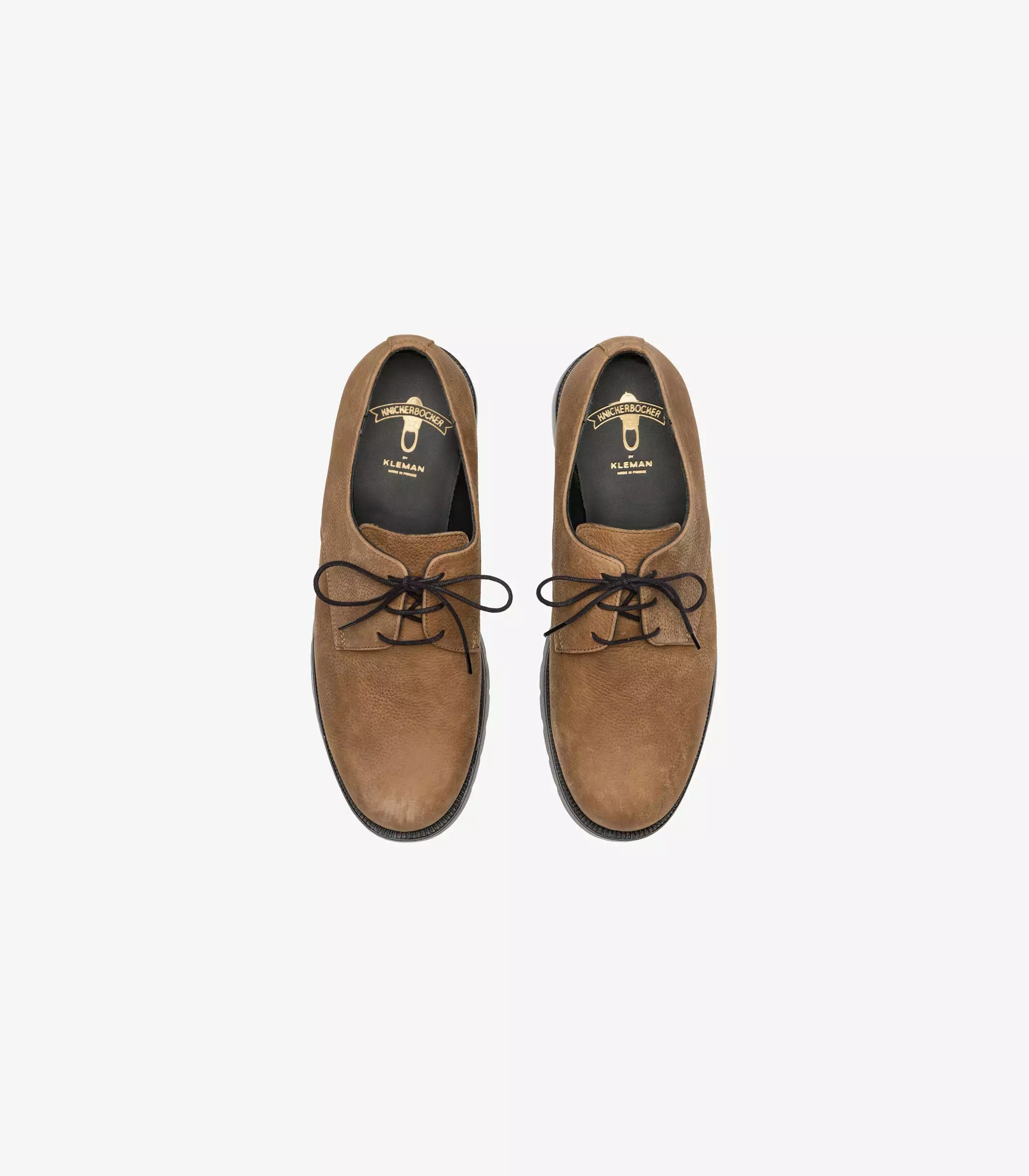 Kleman & Knickerbocker Dormance Derby in Tobacco. Produced in partnership with Kleman – a traditional shoe manufacturer founded in 1946 with their own factory in Anjou, France. Made for all day comfort and durability, Kleman originally produced workwear styles for the military, postal service and firefighters. Features a leather insole, cowhide leather upper & natural rubber outsole. We recommend Huberd’s Shoe Grease for weather-proofing your shoes. Fit is true to size.