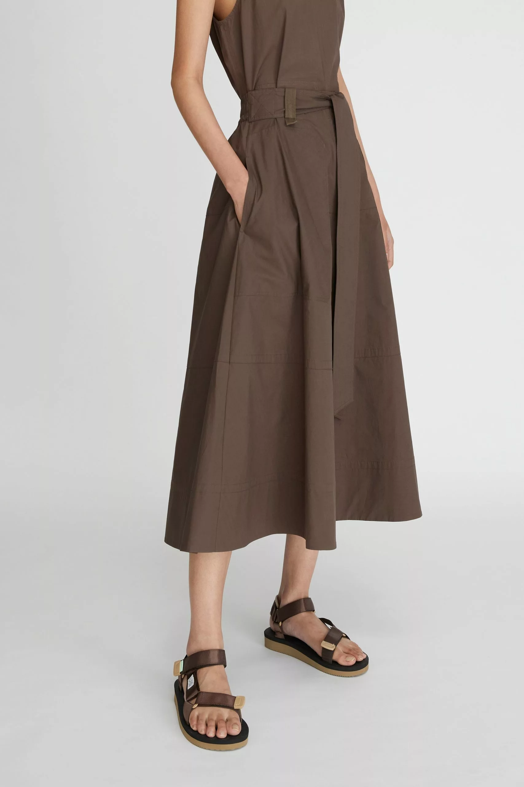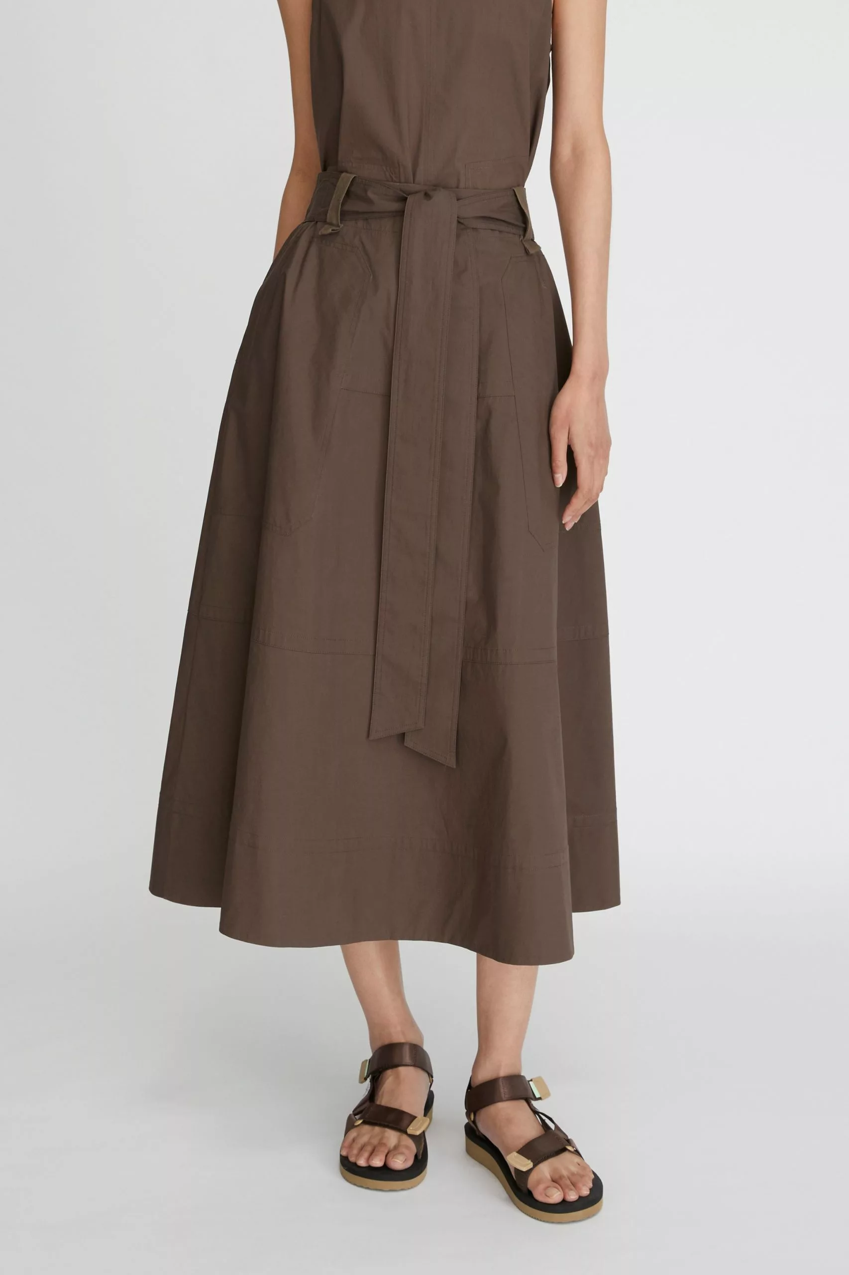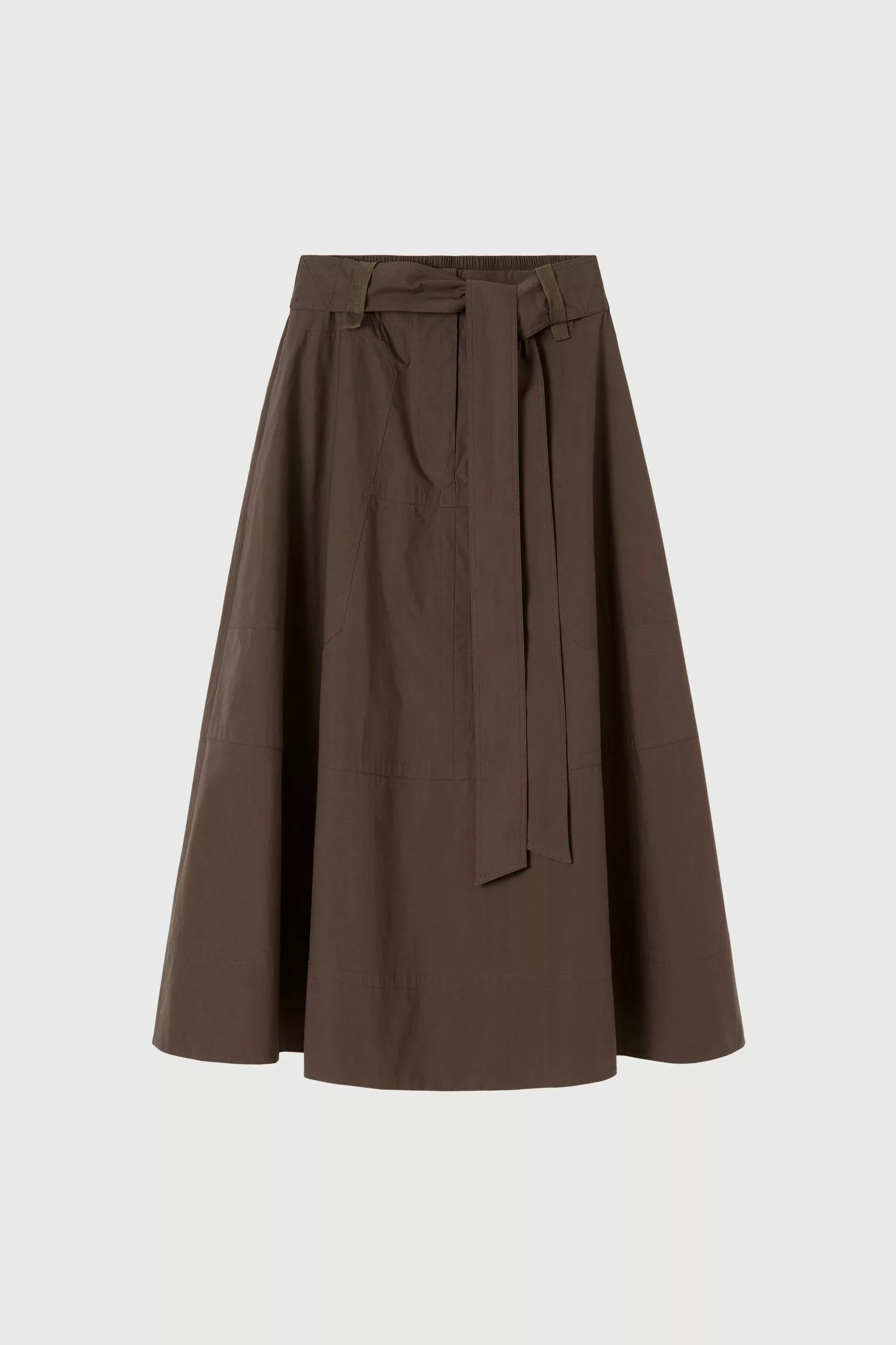 The LM Poplin Skirt in Chocolate from the Workroom collection is made from organic cotton poplin. This skirt has an A-line silhouette and is detailed with an inbuilt belt, elasticated back waistband, and side pockets. Style this versatile skirt for the office or pair it with a cami and sneakers for a classic everyday look.