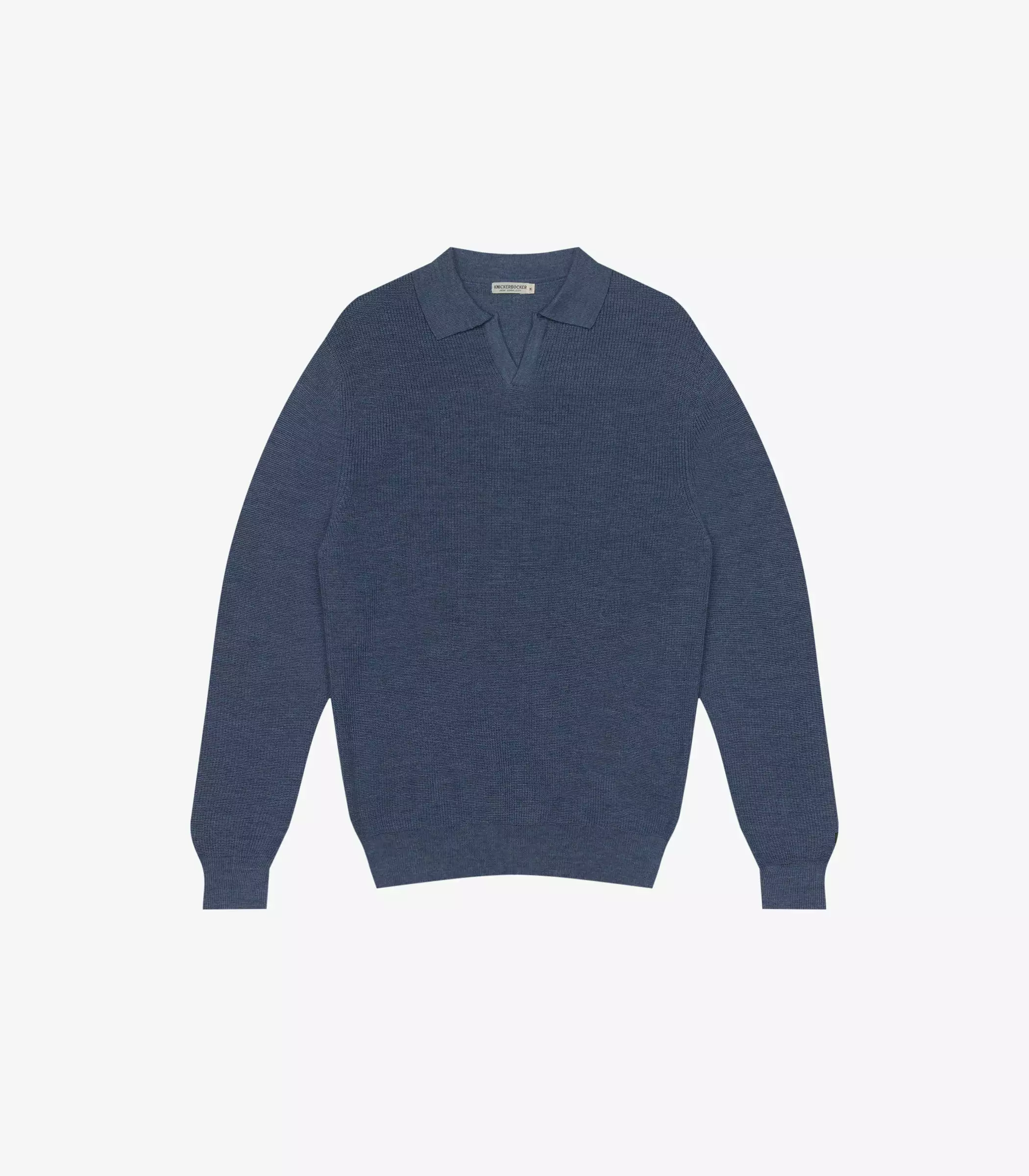 Made of an ultrafine merino wool sourced from Italy. Merino is a premium yarn known for retaining shape, air and warmth while maintaining high elasticity. The sweater features a Knickerbocker label sewn above the rib of wearer’s left sleeve.