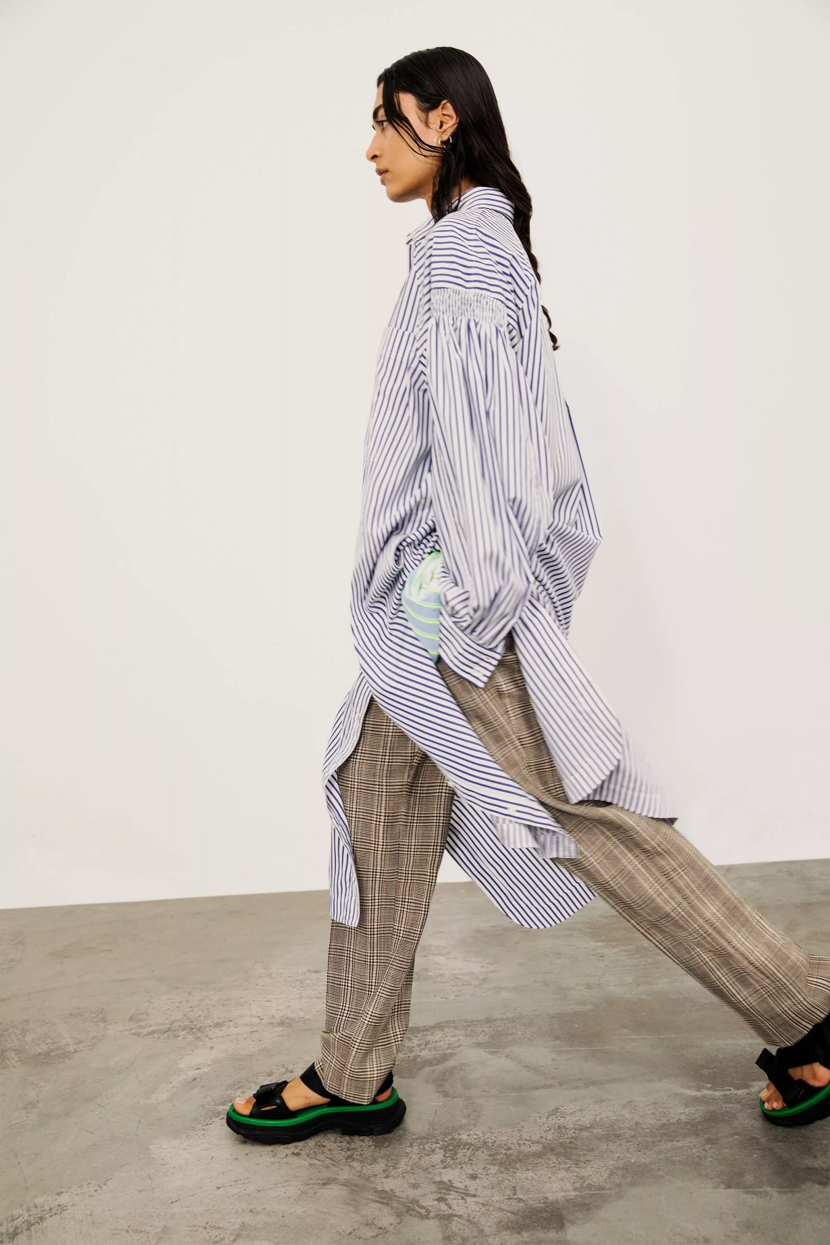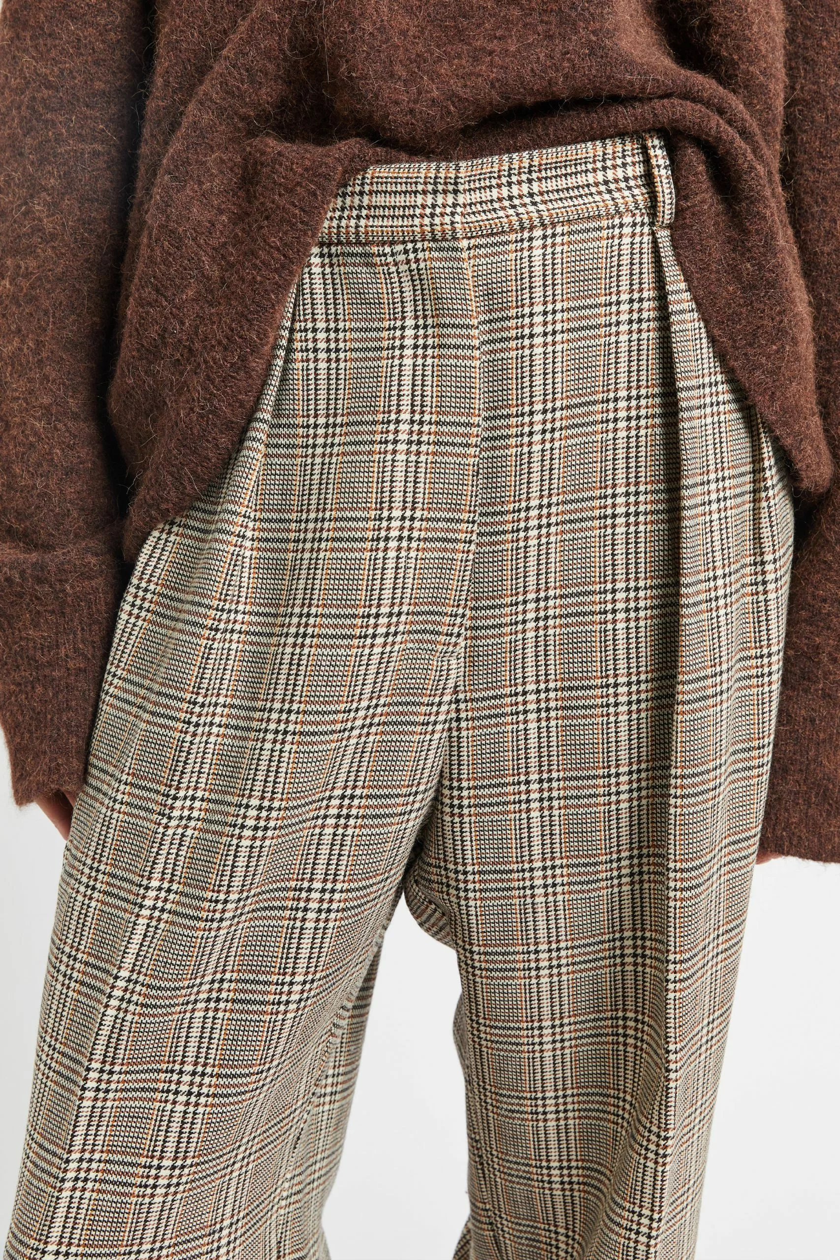 The Mortimer Pleated Pant in Chocolate from the Pre-Fall 22 collection is made from 100% wool. This lightweight fabrication offers an effortless drape and is insulating for temperature regulation during winter and the trans-seasonal months. Detailed with a high waist, full-length leg, and a pleated front these pants can be styled with shirting or knitwear alike.
