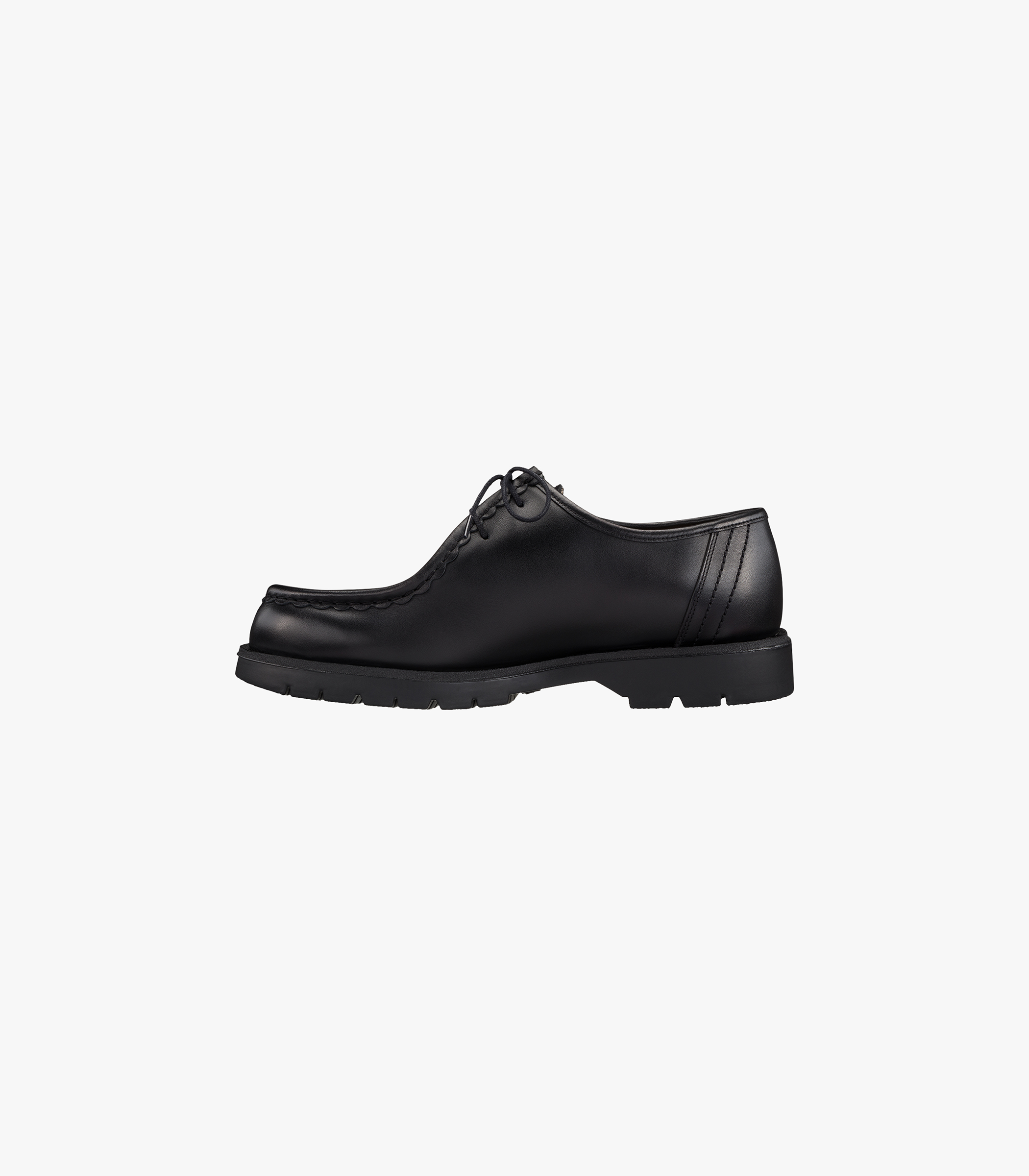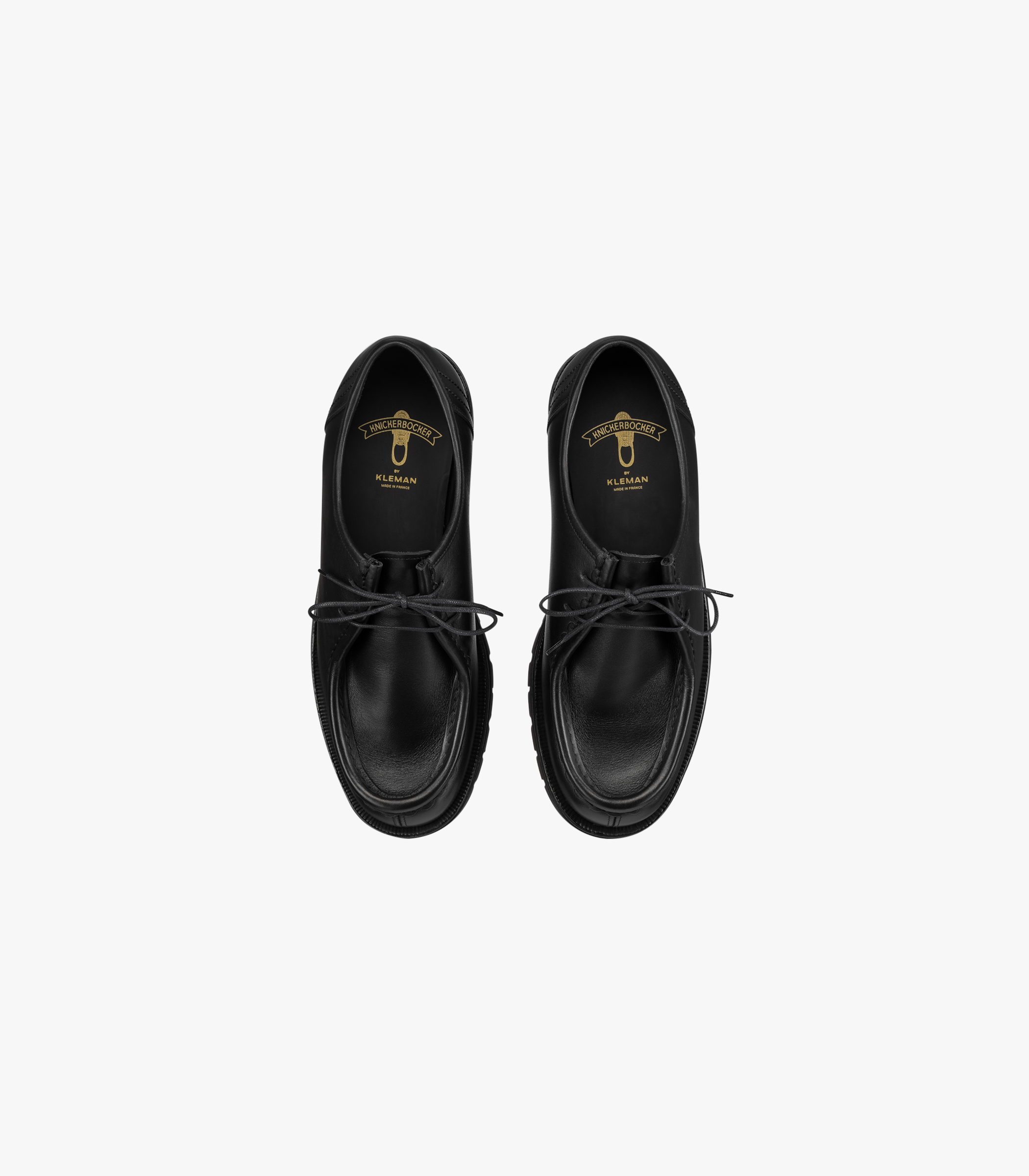 Kleman & Knickerbocker Padror Derby in Black. Produced in partnership with Kleman – a traditional shoe manufacturer founded in 1946 with their own factory in Anjou, France. Made for all day comfort and durability, Kleman originally produced workwear styles for the military, postal service and firefighters. Features a leather insole, leather upper & natural rubber outsole. We recommend Huberd’s Shoe Grease for weather-proofing your shoes. Fit is true to size.