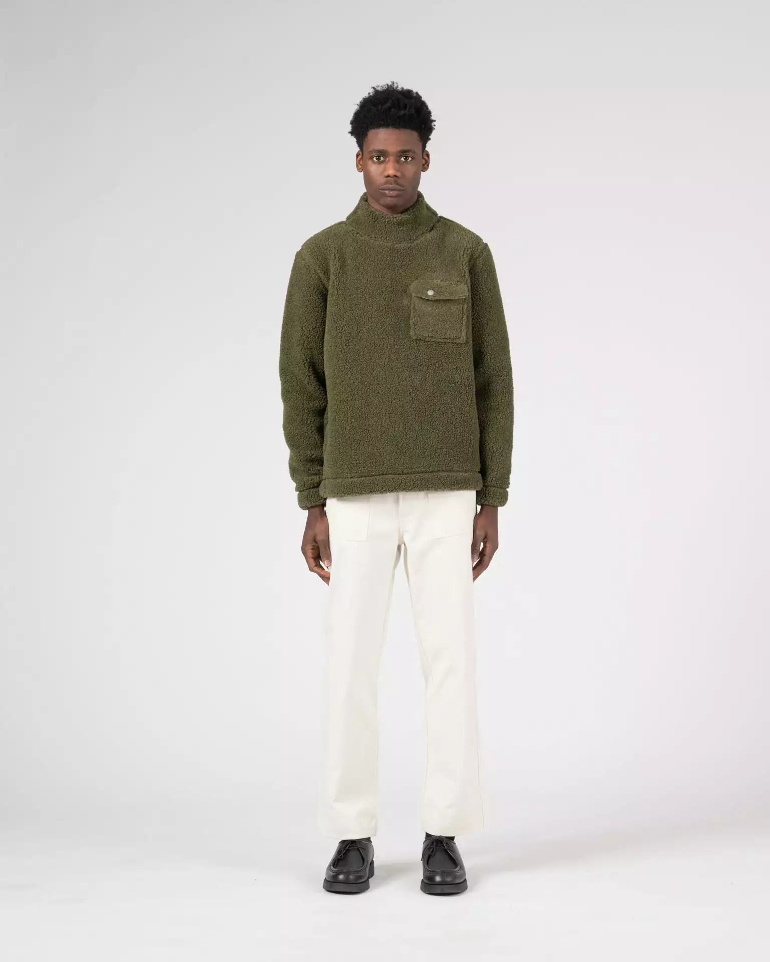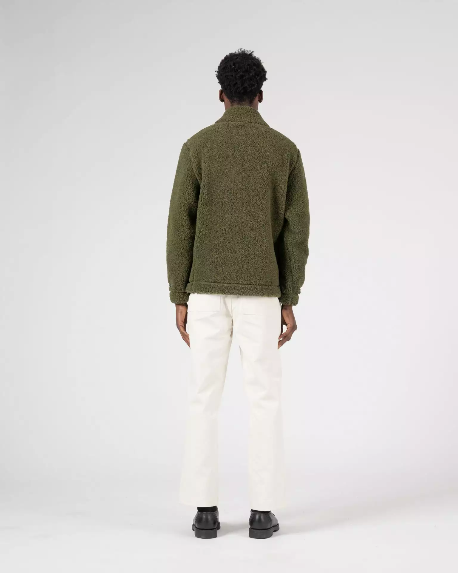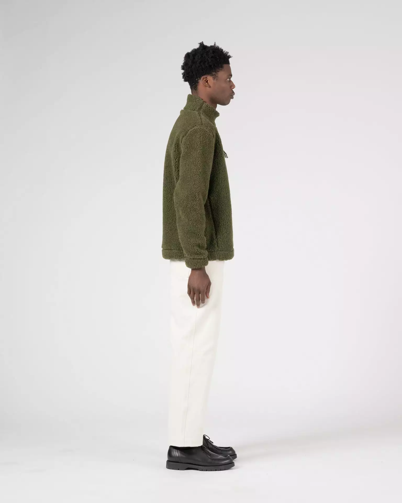 Made of a polyester pile fleece. Features a left chest pocket with snap closure with custom Knickerbocker snaps.