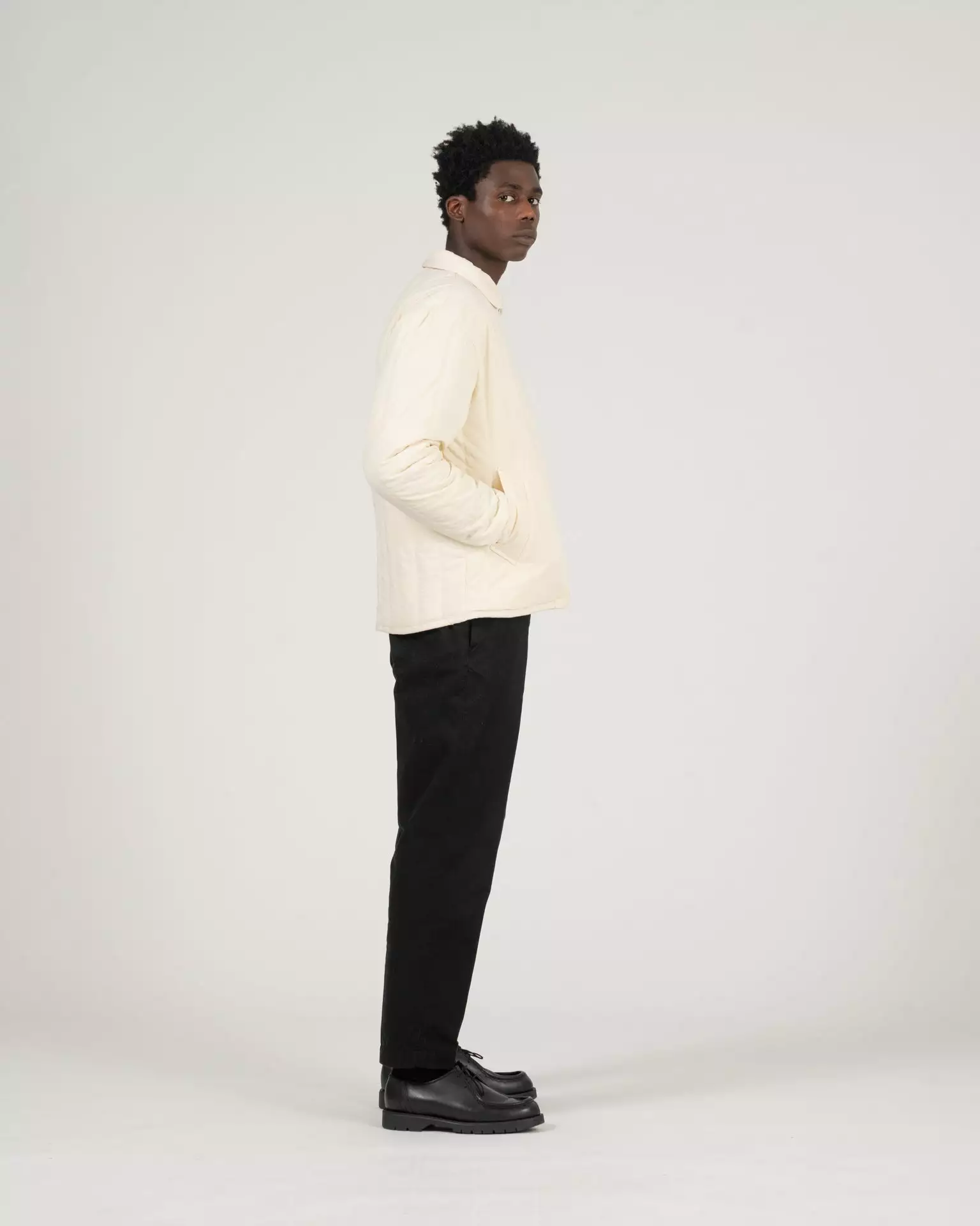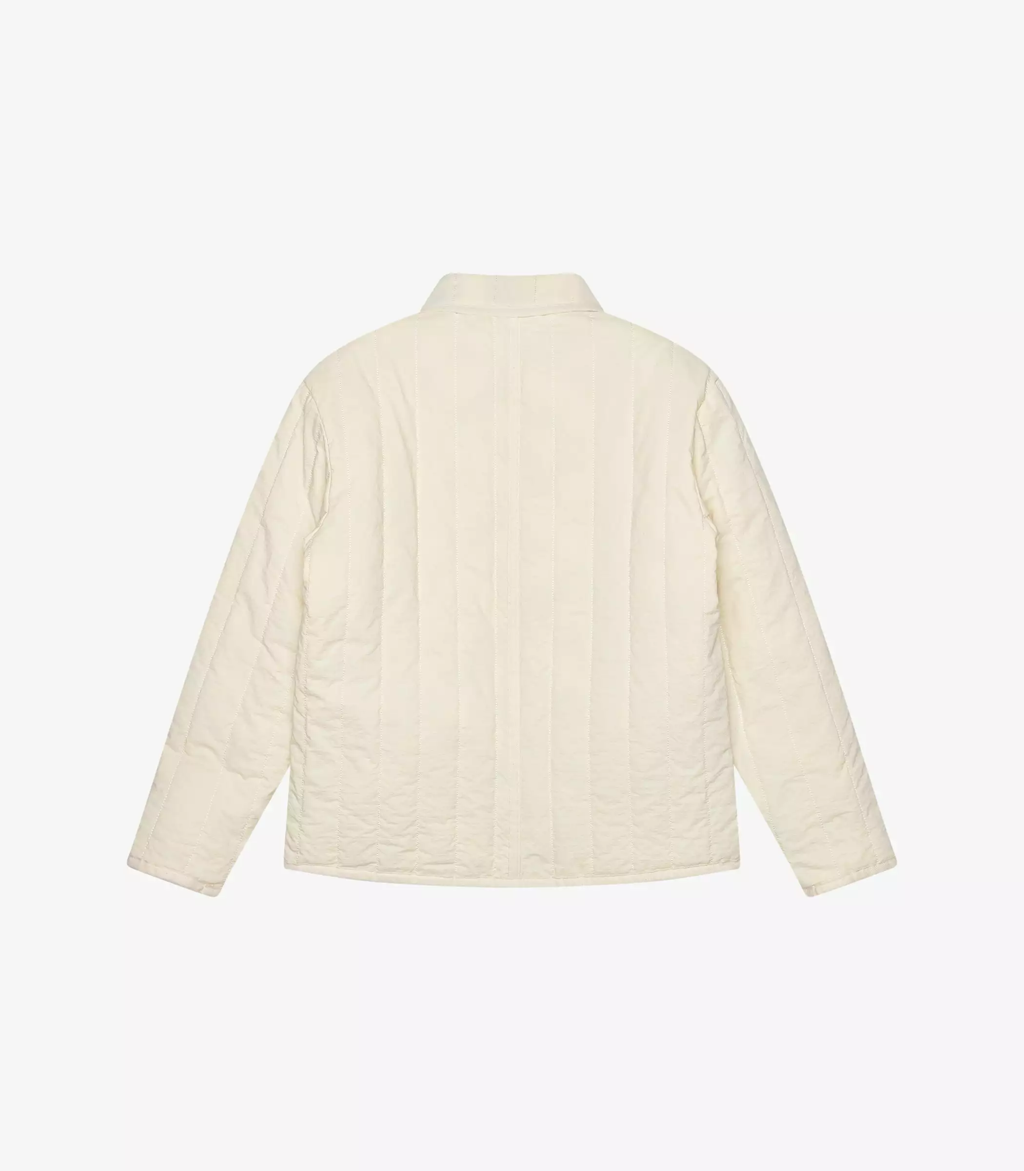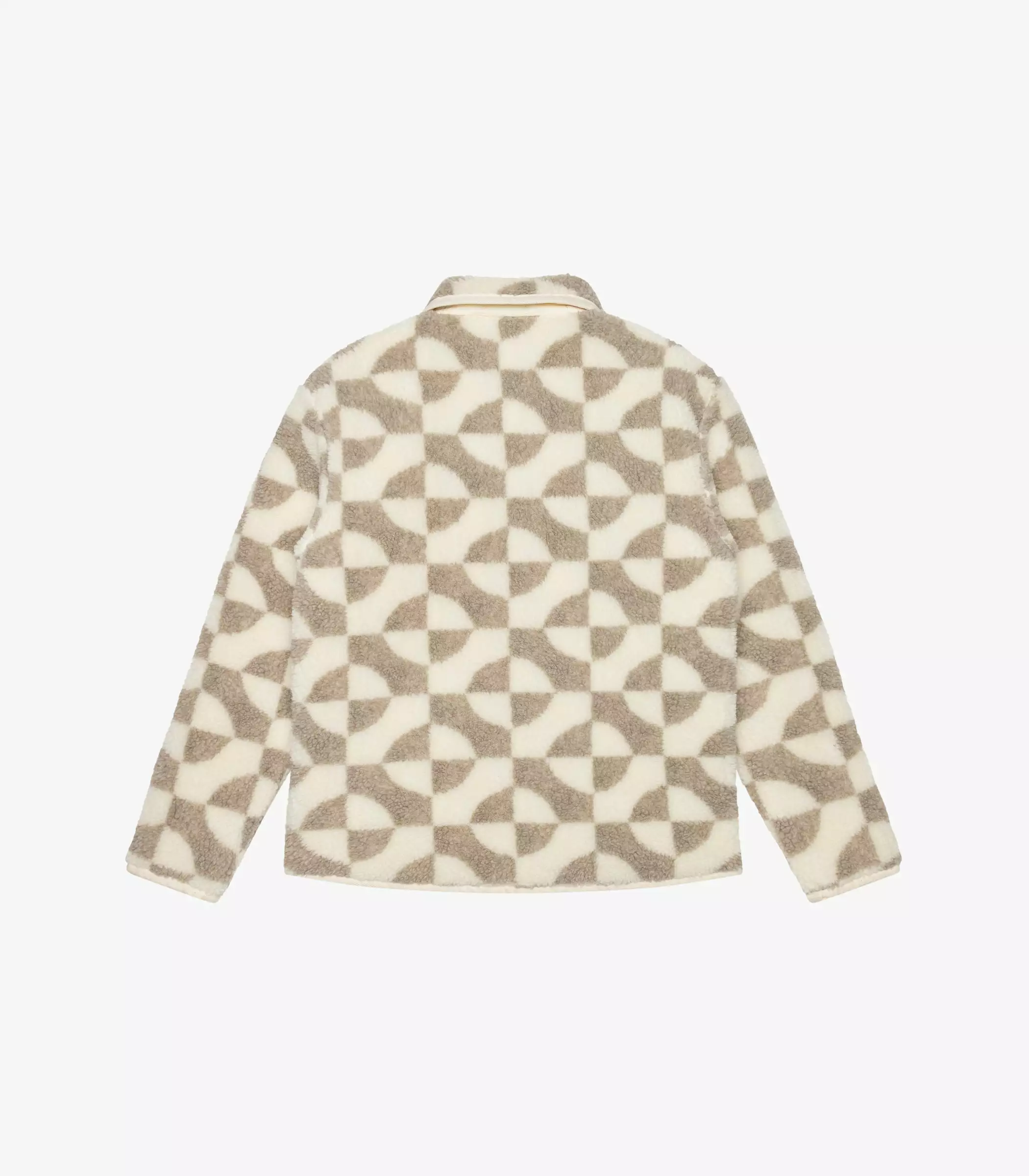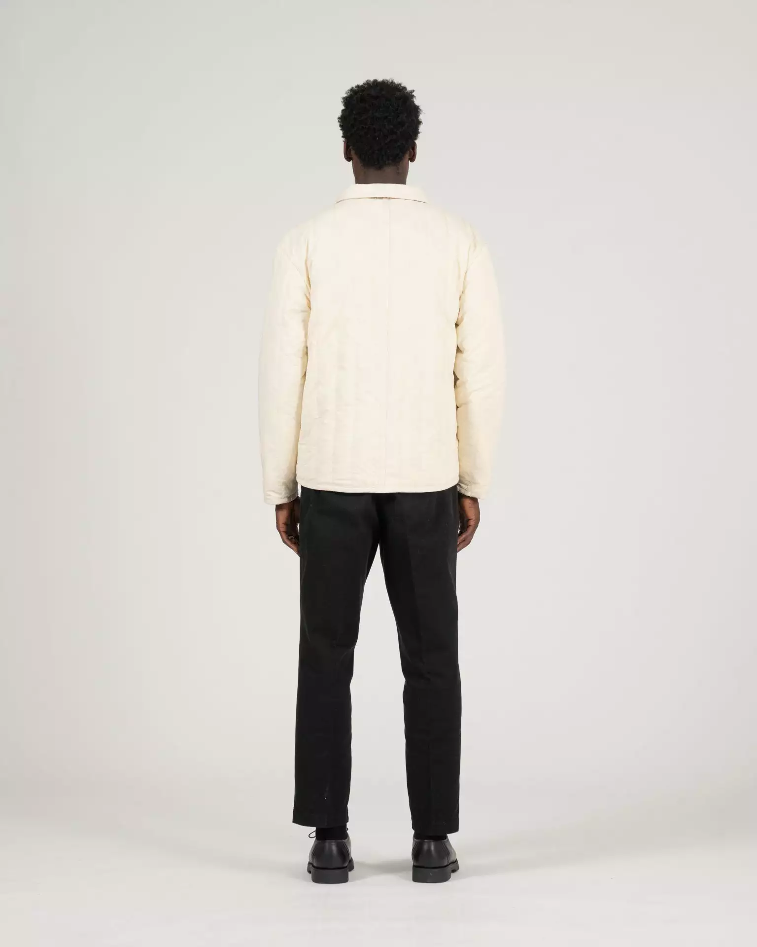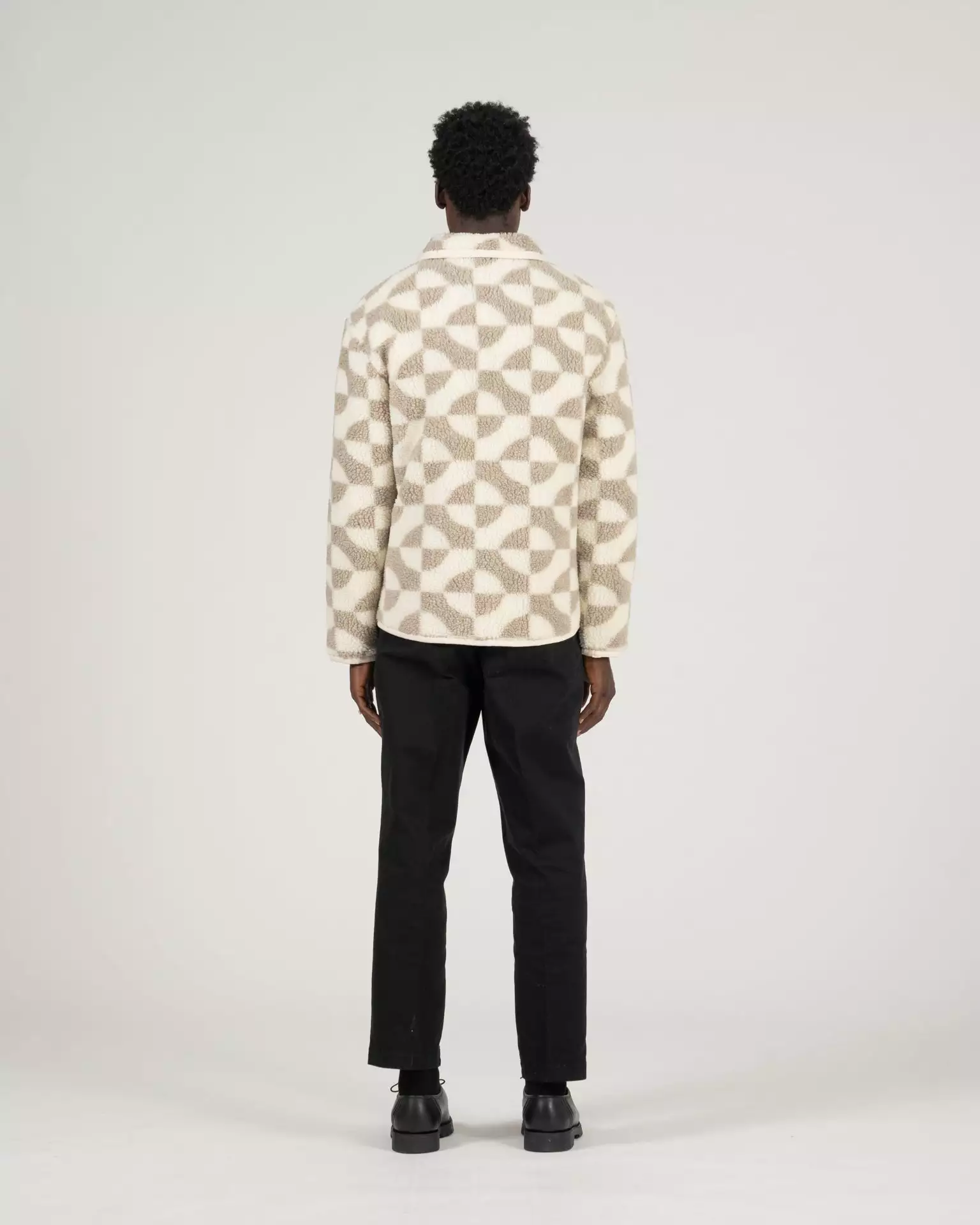 The Reverse Century Jacket in natural. The shell is a custom made pile fleece from Italy. The the reverse is a light quilted PFC free, water repellant krinkle cotton and poly blend from the well known technical Italian mill, Olmetex. Features a reversible Talon zipper and signature “K” label on pocket.