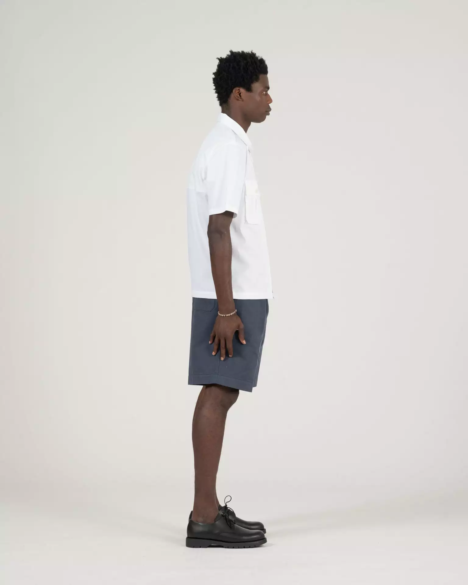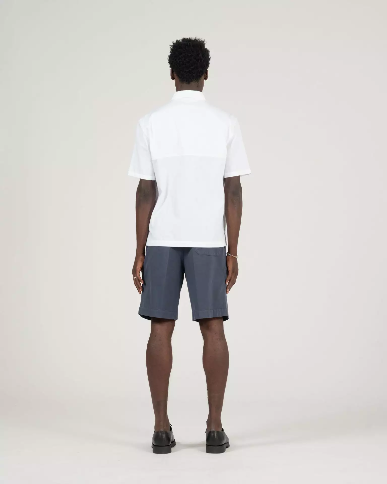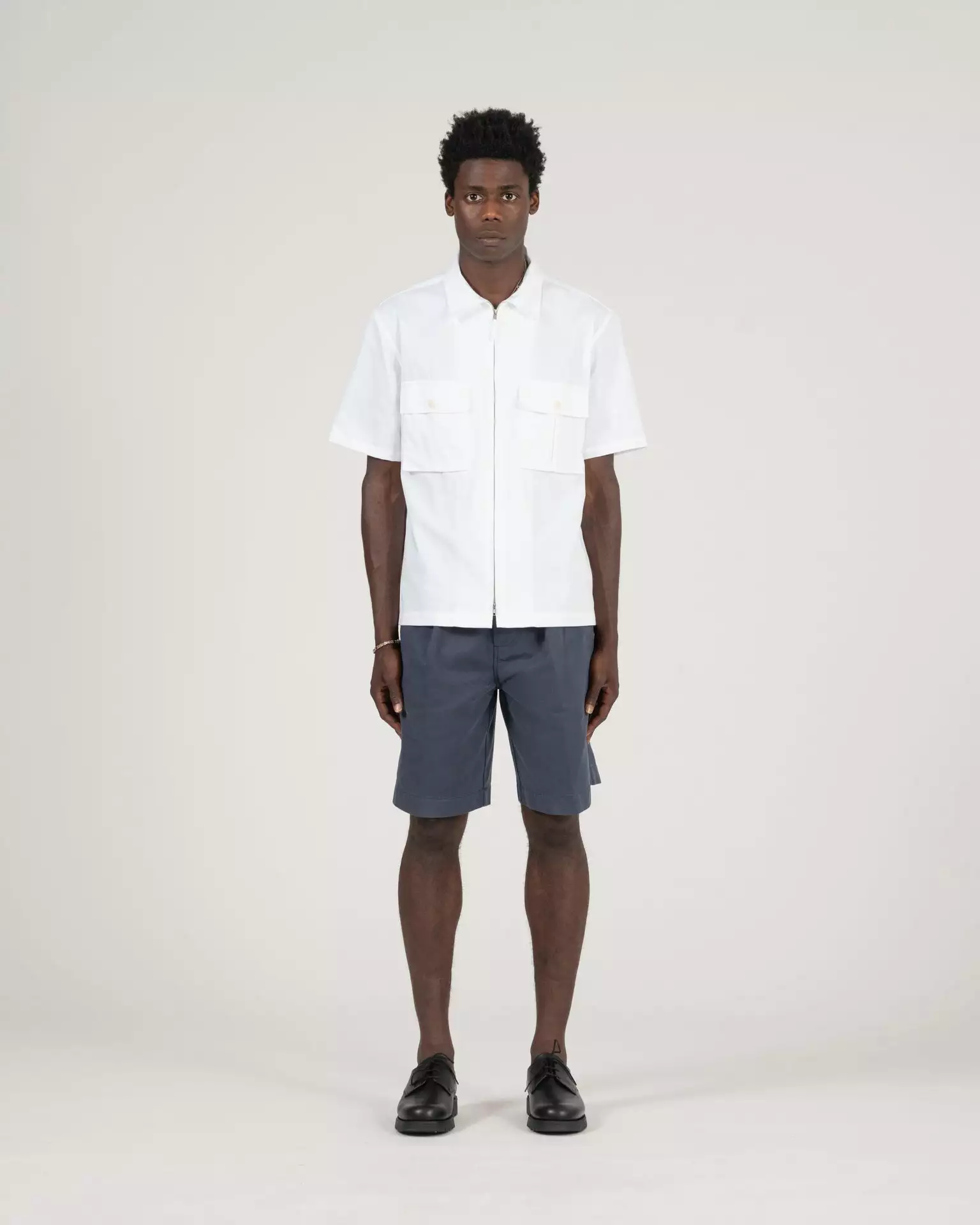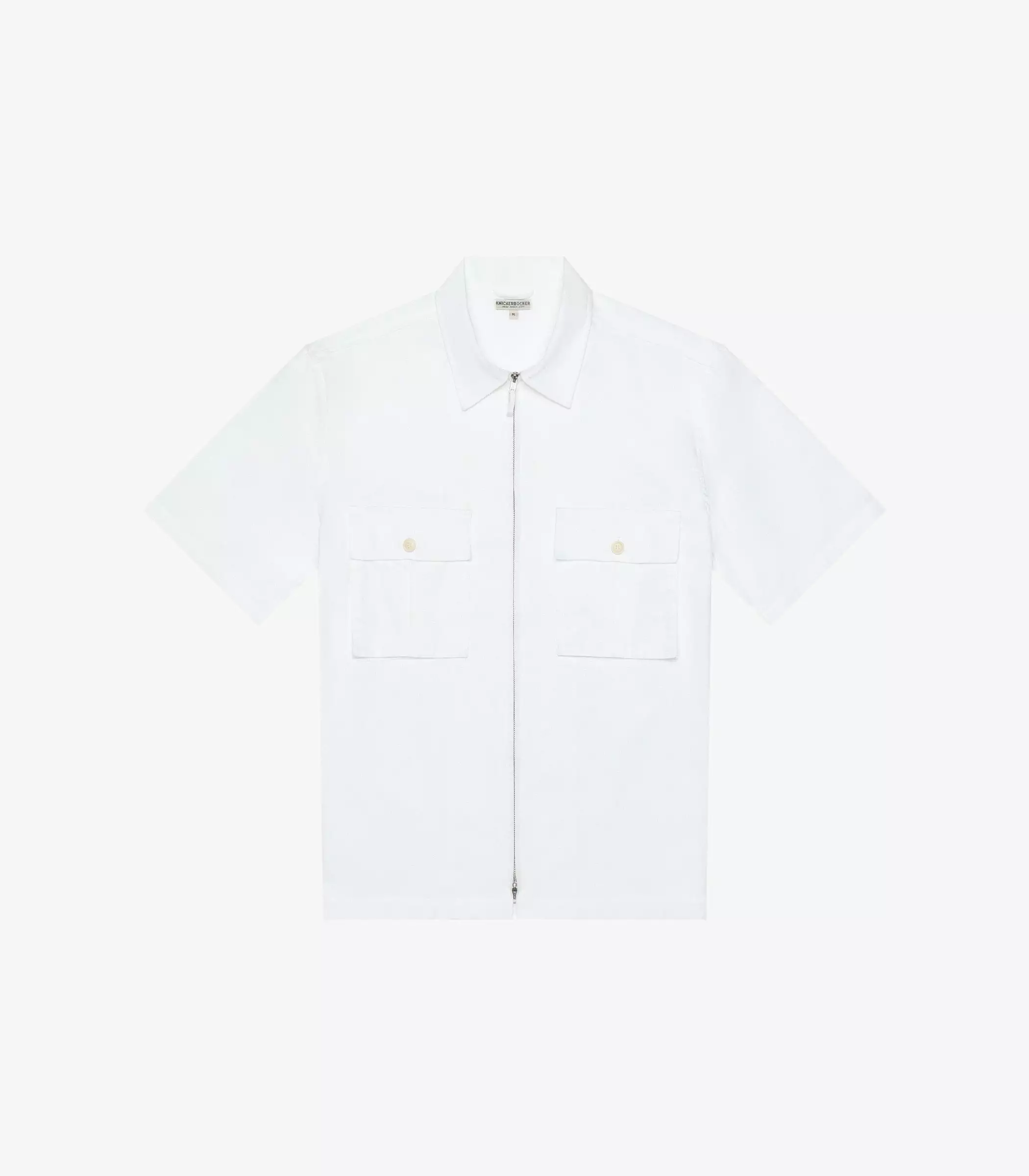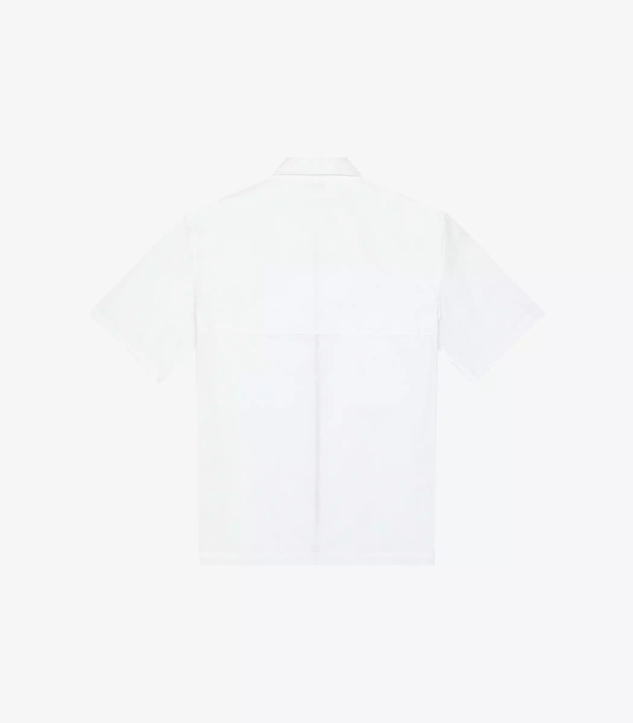 The Safari Shirt in white. Made of a lightweight cotton. Features a two-way Talon zipper, corozo buttons and K.N.Y. embroidered monogram.