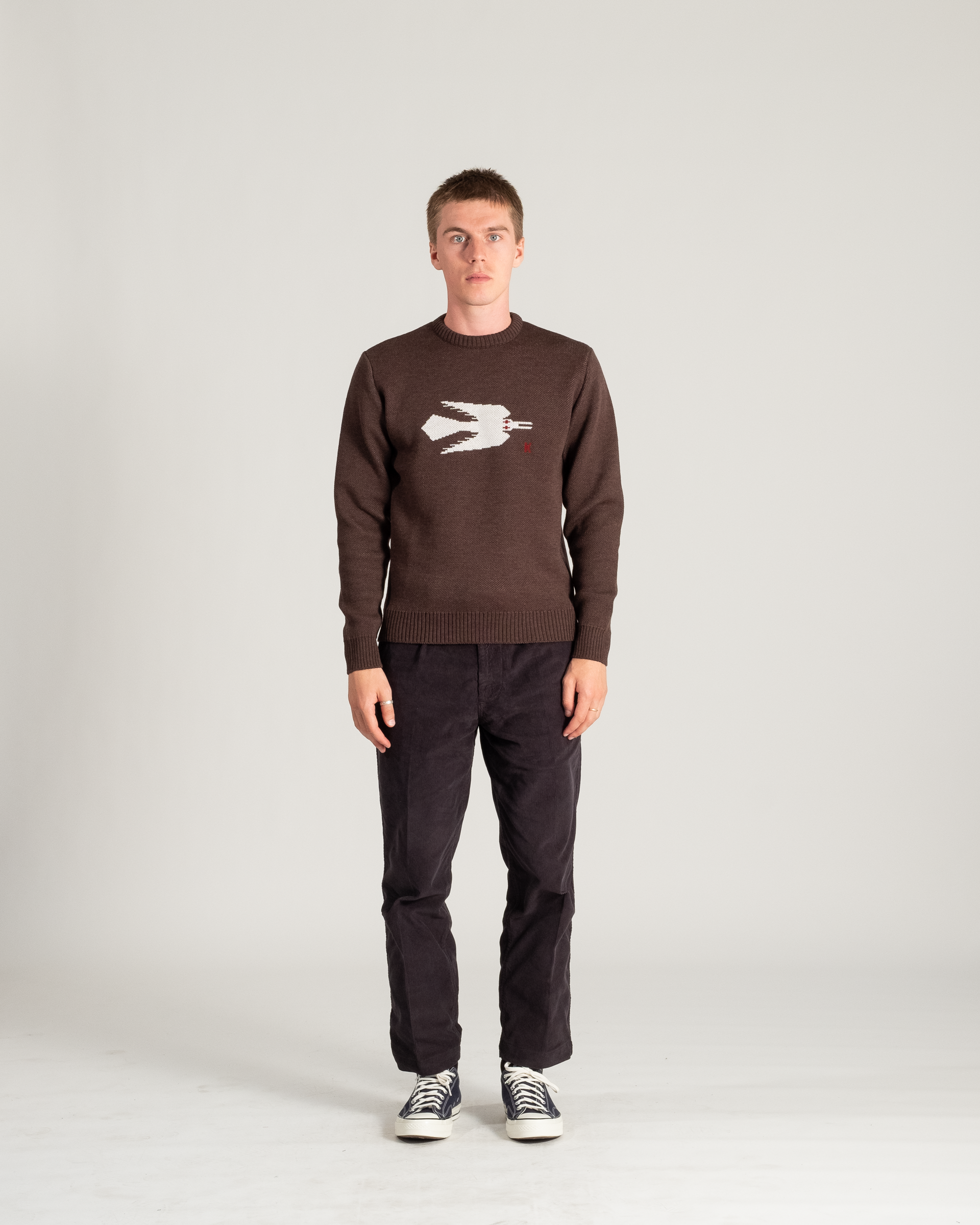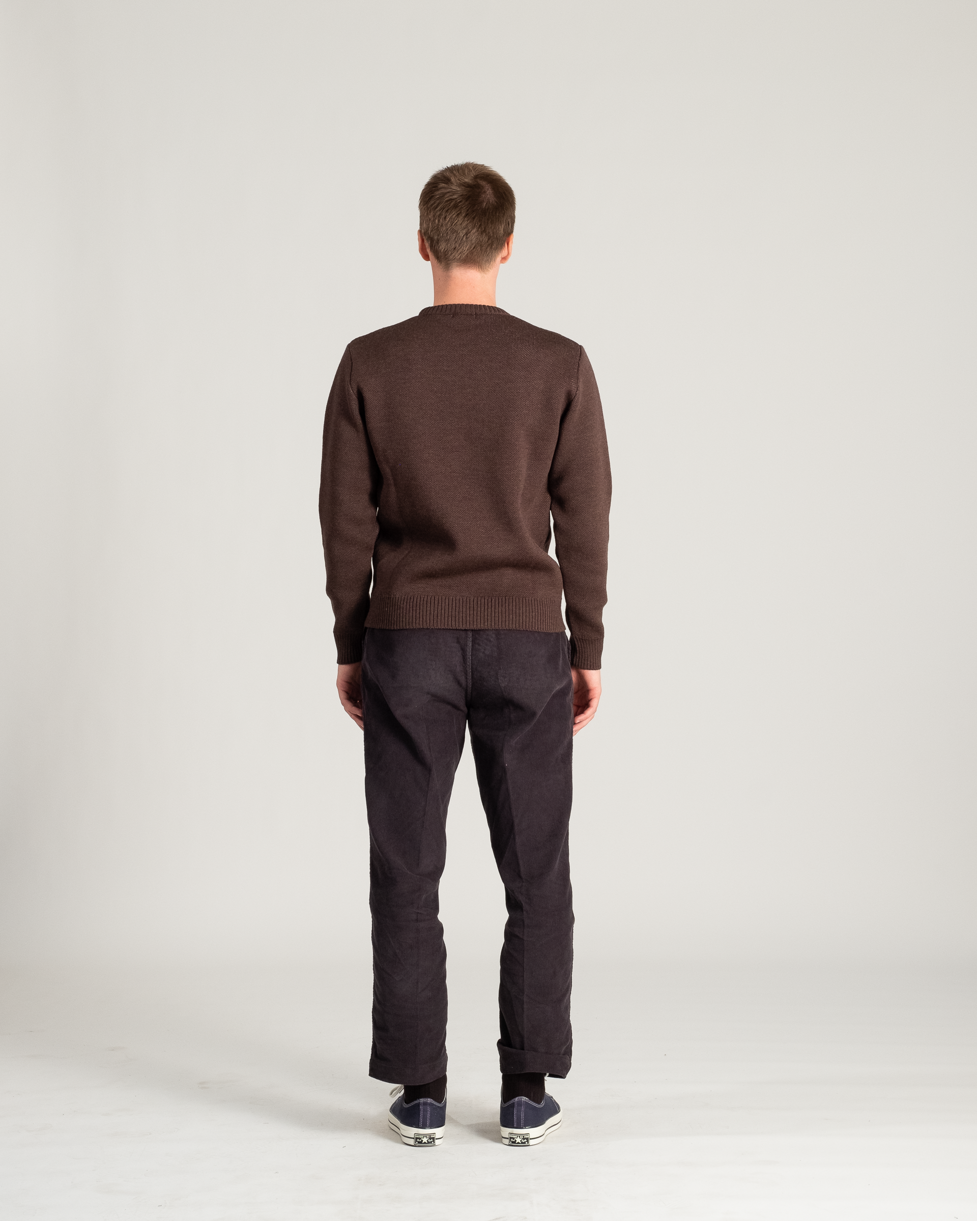 The Santa Fe Sweater in hazel melange. Made of 100% merino wool imported from Italy.