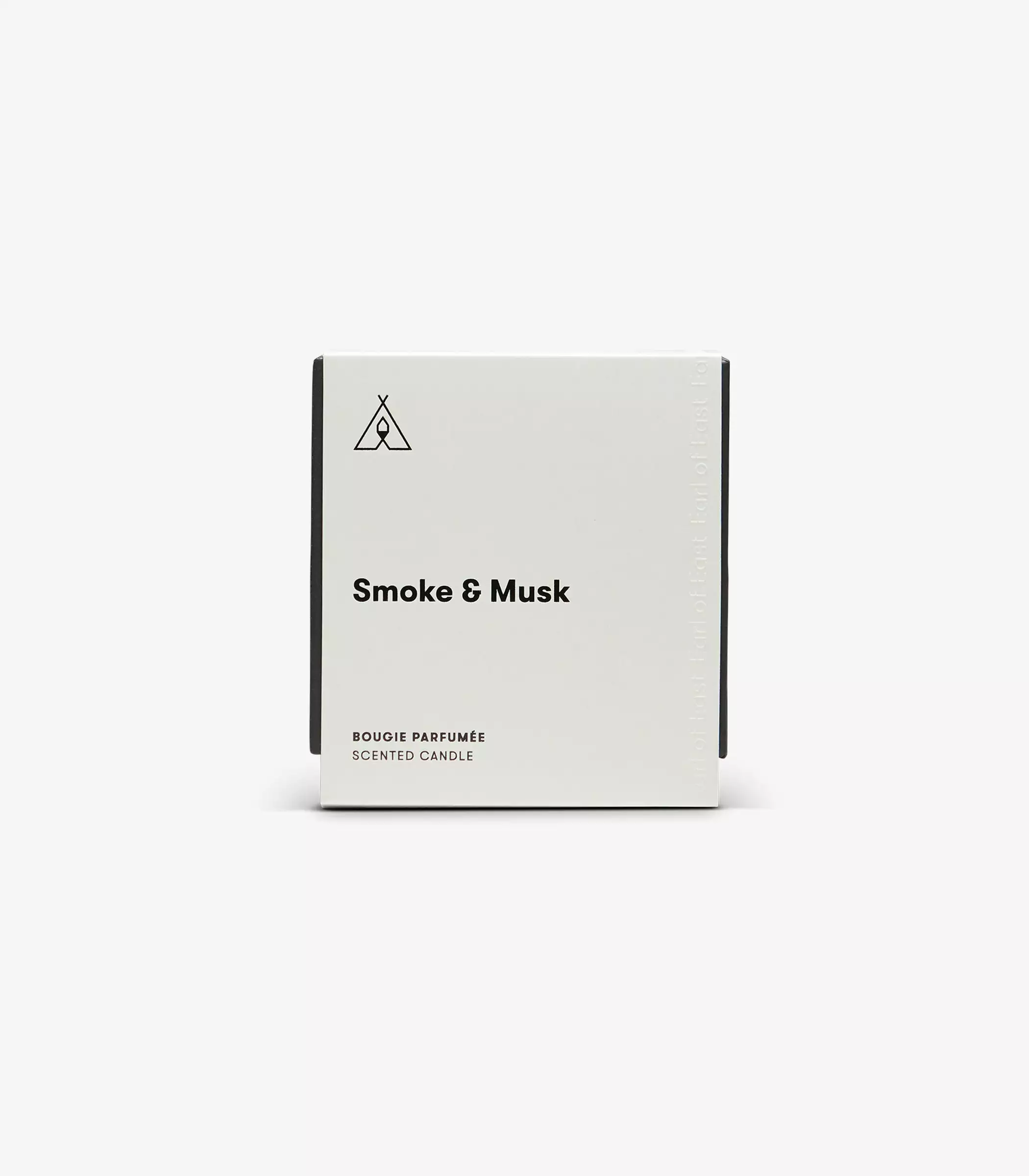The Smoke & Musk candle by Earl of East. Deep notes of green balsam fir, wood smoke, and musky patchouli. Expertly hand-poured and finished in London using the finest soy wax and bespoke fragrance blends. 60 hours burn time.